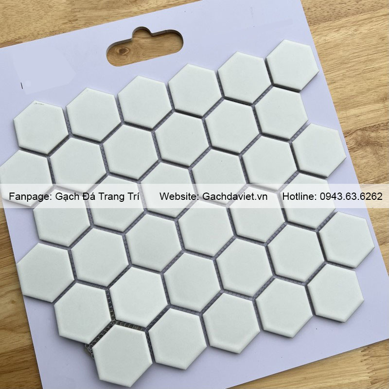 Gạch mosaic lục giác là mẫu vật liệu ốp lát được làm bởi nhiều viên gạch hình lục giác kích thước nhỏ liên kết với nhau tạo thành các vỉ gạch. Gạch có màu sắc đa dạng, có thể tạo hình nên rất được ưa chuộng sử dụng trong việc trang trí. Công trình xây dựng trong nhà và ngoài trời sử dụng vật liệu đảm bảo độ bền cao cùng tính thẩm mỹ nổi bật.
