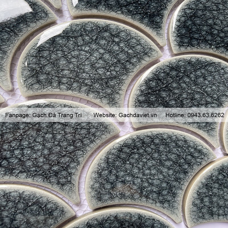 Gạch mosaic vảy cá là loại gạch được ghép từ những viên chip nhỏ có hình vảy cá thành vỉ. Gạch được làm từ gốm, đá tự nhiên và thủy tinh với màu sắc và họa tiết đa dạng. Gạch có tính thẩm mỹ cao, thường được dùng để trang trí tạo điểm nhấn cho không gian