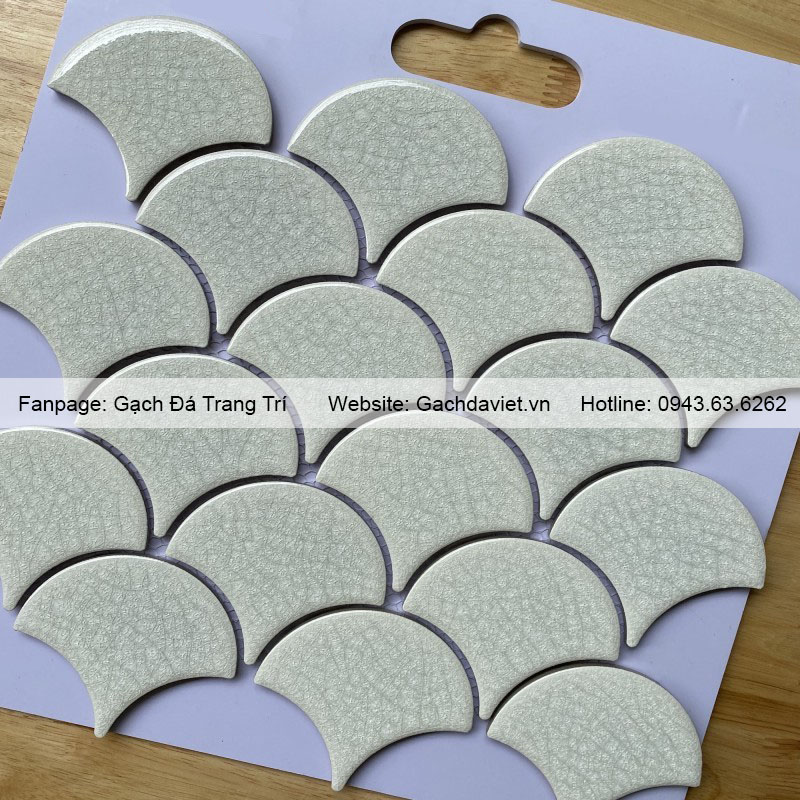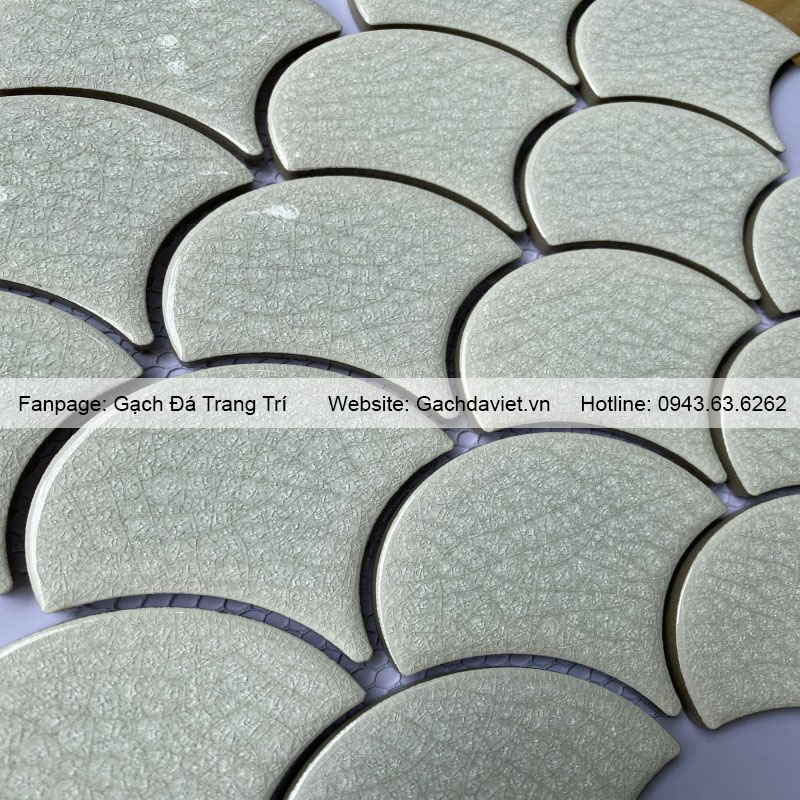 Gạch mosaic vảy cá là loại gạch được ghép từ những viên chip nhỏ có hình vảy cá thành vỉ. Gạch được làm từ gốm, đá tự nhiên và thủy tinh với màu sắc và họa tiết đa dạng. Gạch có tính thẩm mỹ cao, thường được dùng để trang trí tạo điểm nhấn cho không gian