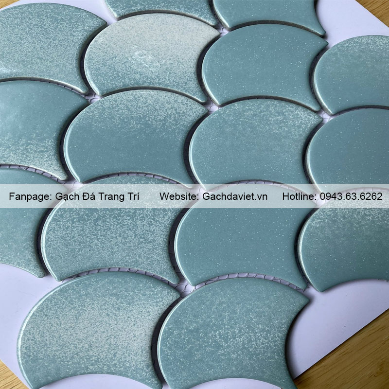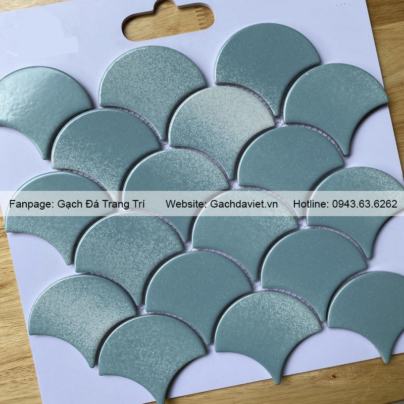 Gạch mosaic vảy cá là loại gạch được ghép từ những viên chip nhỏ có hình vảy cá thành vỉ. Gạch được làm từ gốm, đá tự nhiên và thủy tinh với màu sắc và họa tiết đa dạng. Gạch có tính thẩm mỹ cao, thường được dùng để trang trí tạo điểm nhấn cho không gian