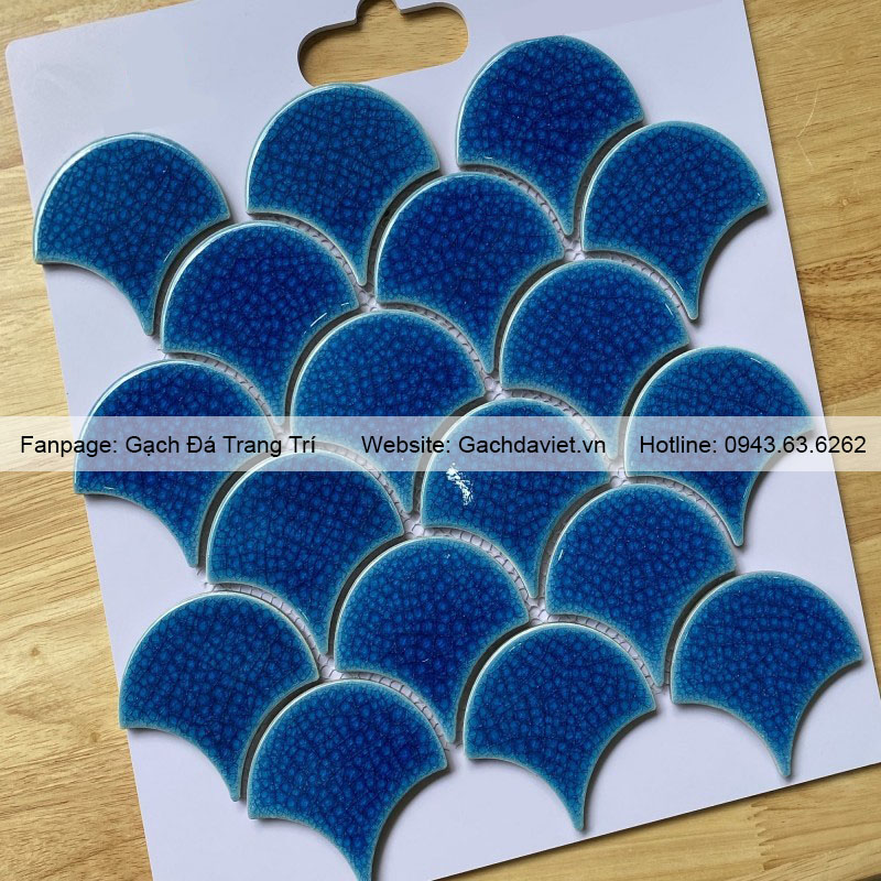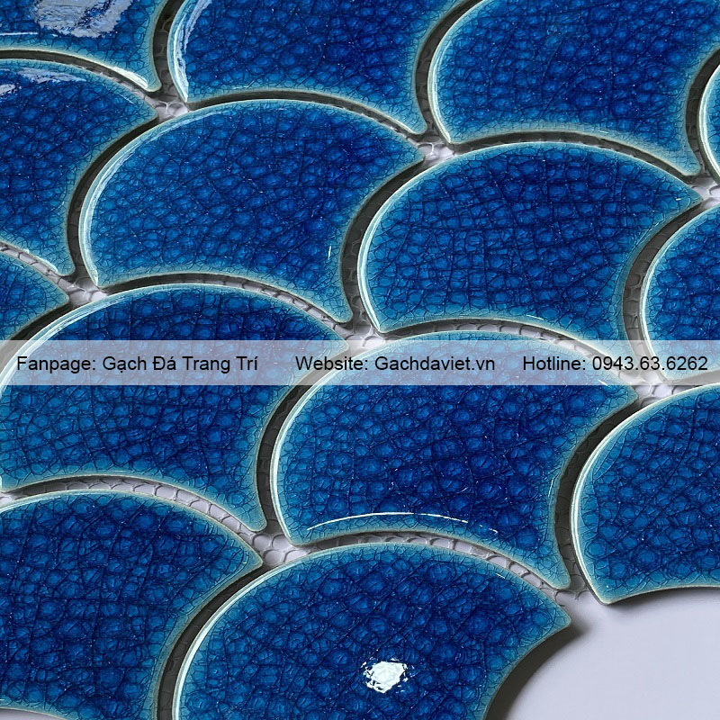 Gạch mosaic vảy cá là loại gạch được ghép từ những viên chip nhỏ có hình vảy cá thành vỉ. Gạch được làm từ gốm, đá tự nhiên và thủy tinh với màu sắc và họa tiết đa dạng. Gạch có tính thẩm mỹ cao, thường được dùng để trang trí tạo điểm nhấn cho không gian