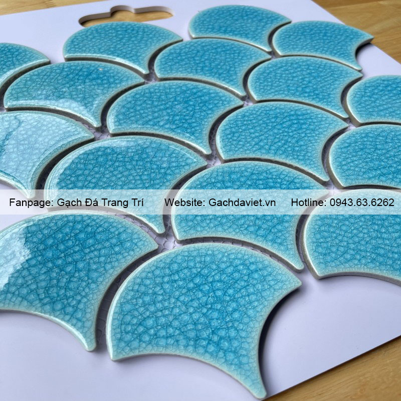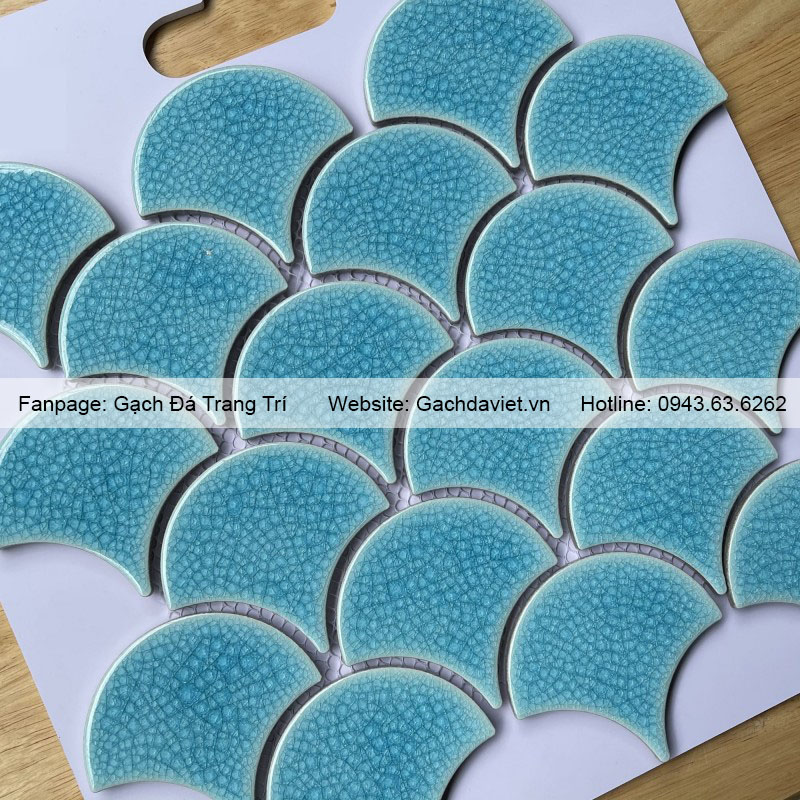 Gạch mosaic vảy cá là loại gạch được ghép từ những viên chip nhỏ có hình vảy cá thành vỉ. Gạch được làm từ gốm, đá tự nhiên và thủy tinh với màu sắc và họa tiết đa dạng. Gạch có tính thẩm mỹ cao, thường được dùng để trang trí tạo điểm nhấn cho không gian