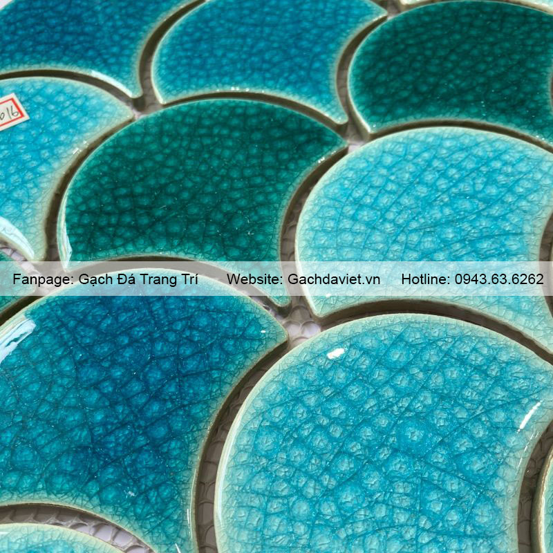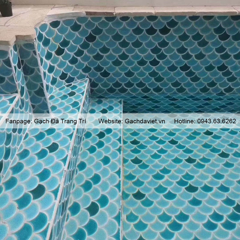 Gạch mosaic vảy cá là loại gạch được ghép từ những viên chip nhỏ có hình vảy cá thành vỉ. Gạch được làm từ gốm, đá tự nhiên và thủy tinh với màu sắc và họa tiết đa dạng. Gạch có tính thẩm mỹ cao, thường được dùng để trang trí tạo điểm nhấn cho không gian