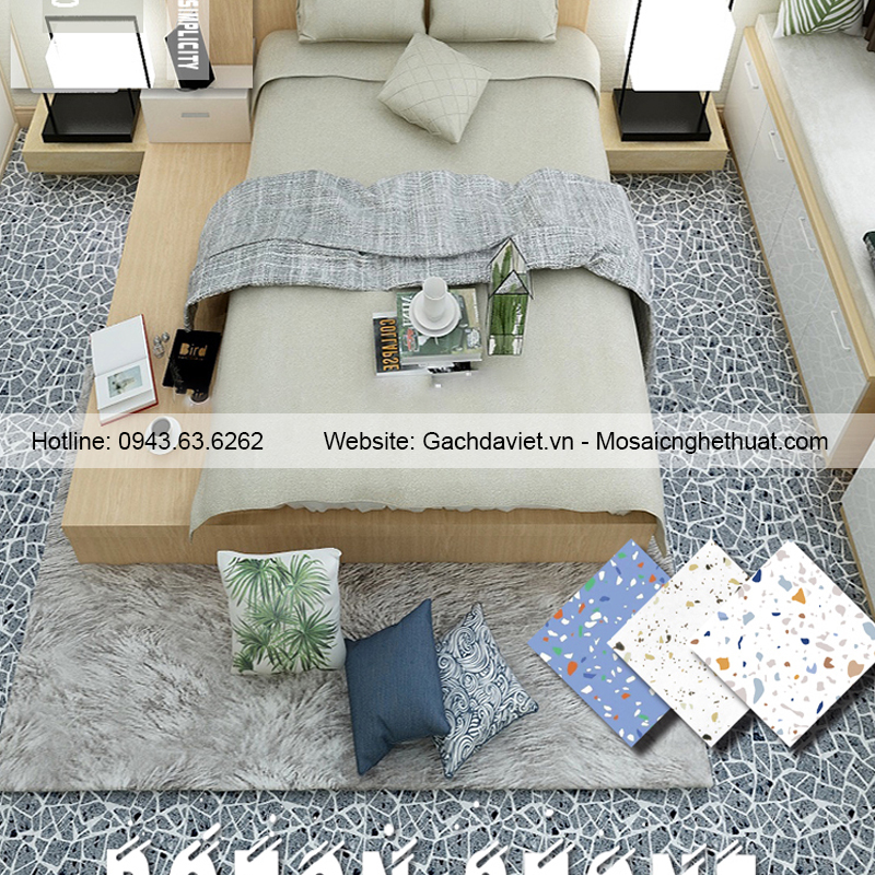 Gạch terrazzo là một trong những lựa chọn ốp lát linh hoạt nhất hiện có trên thị trường. Những đốm màu ngẫu nhiên, độc đáo trên bề mặt gạch cùng với chất liệu không trơn trượt, chống mài mòn giúp loại gạch này có thể phù hợp với hầu hết mọi yêu cầu thiết kế, dễ dàng được ứng dụng trong việc ốp lát phòng khách, bếp, nhà tắm, ban công, trang trí quán cà phê, nhà hàng, bar, khách sạn ...