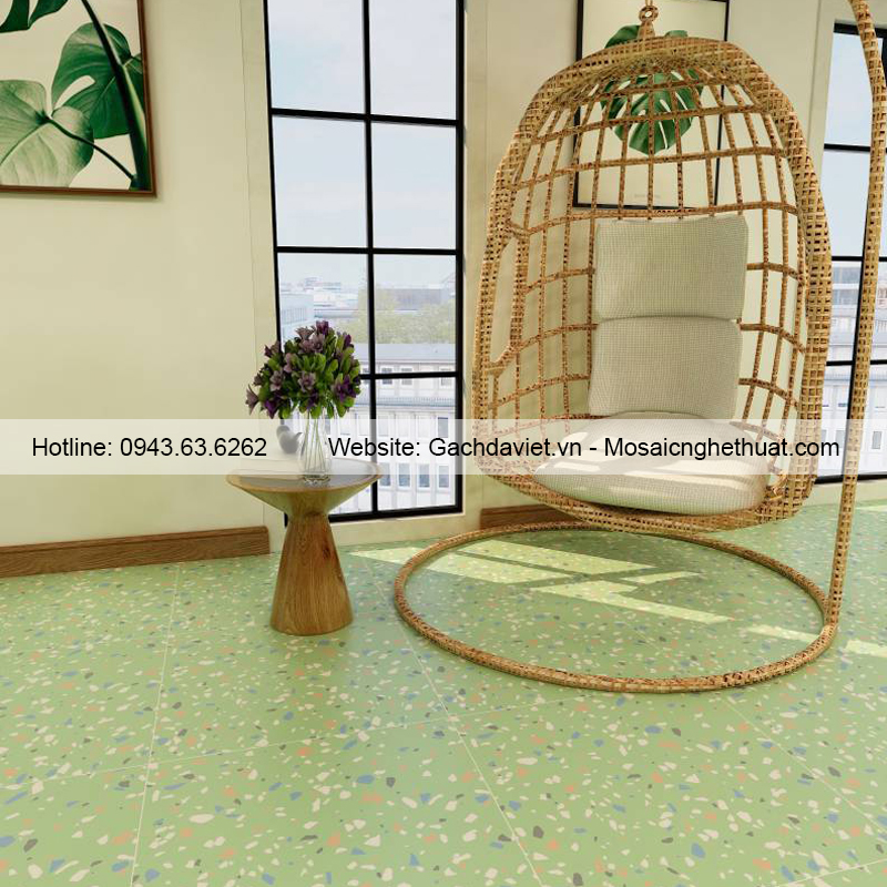 Gạch terrazzo là một trong những lựa chọn ốp lát linh hoạt nhất hiện có trên thị trường. Những đốm màu ngẫu nhiên, độc đáo trên bề mặt gạch cùng với chất liệu không trơn trượt, chống mài mòn giúp loại gạch này có thể phù hợp với hầu hết mọi yêu cầu thiết kế, dễ dàng được ứng dụng trong việc ốp lát phòng khách, bếp, nhà tắm, ban công, trang trí quán cà phê, nhà hàng, bar, khách sạn ...