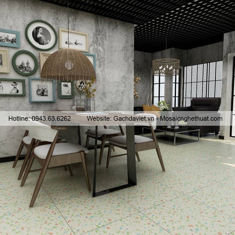 Gạch terrazzo là một trong những lựa chọn ốp lát linh hoạt nhất hiện có trên thị trường. Những đốm màu ngẫu nhiên, độc đáo trên bề mặt gạch cùng với chất liệu không trơn trượt, chống mài mòn giúp loại gạch này có thể phù hợp với hầu hết mọi yêu cầu thiết kế, dễ dàng được ứng dụng trong việc ốp lát phòng khách, bếp, nhà tắm, ban công, trang trí quán cà phê, nhà hàng, bar, khách sạn ...
