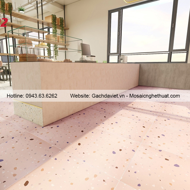 Gạch terrazzo là một trong những lựa chọn ốp lát linh hoạt nhất hiện có trên thị trường. Những đốm màu ngẫu nhiên, độc đáo trên bề mặt gạch cùng với chất liệu không trơn trượt, chống mài mòn giúp loại gạch này có thể phù hợp với hầu hết mọi yêu cầu thiết kế, dễ dàng được ứng dụng trong việc ốp lát phòng khách, bếp, nhà tắm, ban công, trang trí quán cà phê, nhà hàng, bar, khách sạn ...