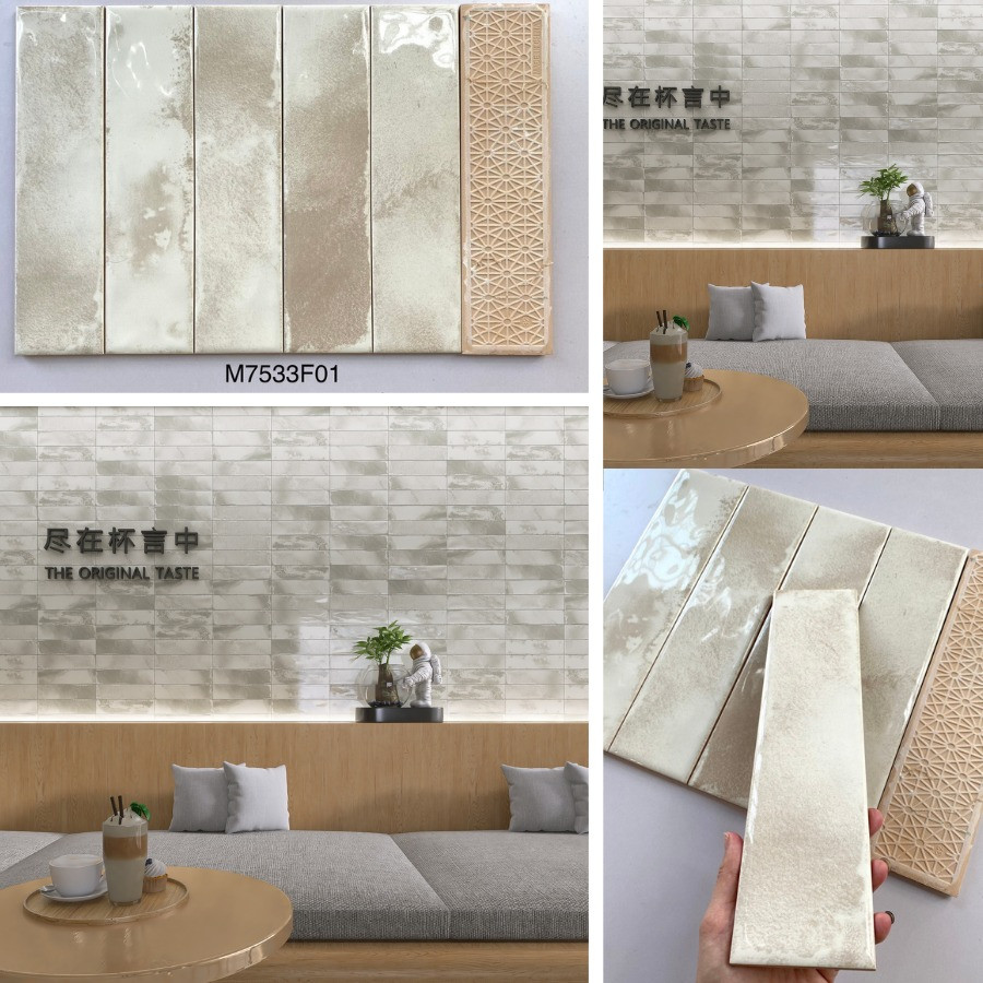 Gạch thẻ được làm từ chất liệu chính là gạch men – Ceramic, bề mặt bóng ,được ưa chuộng nhất trong khoảng thời gian gần đây.
