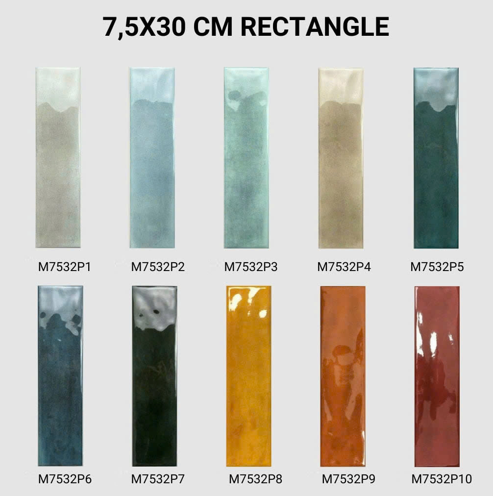 Gạch thẻ được làm từ chất liệu chính là gạch men – Ceramic, bề mặt bóng ,được ưa chuộng nhất trong khoảng thời gian gần đây.
