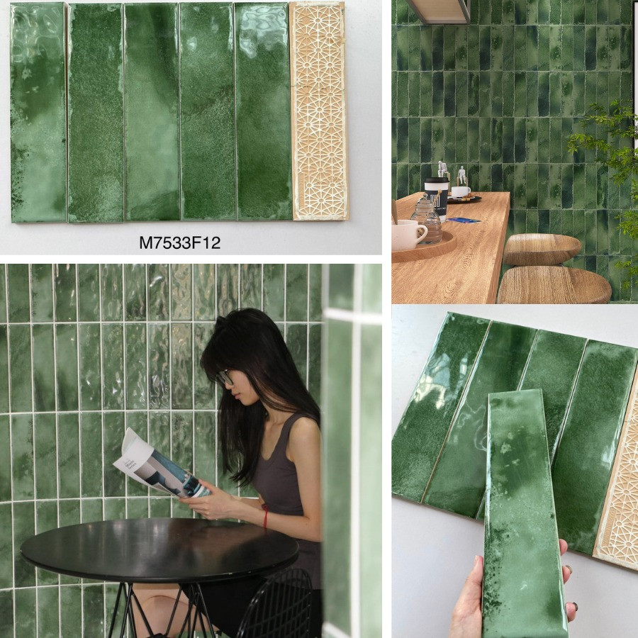 Gạch thẻ được làm từ chất liệu chính là gạch men – Ceramic, bề mặt bóng ,được ưa chuộng nhất trong khoảng thời gian gần đây.