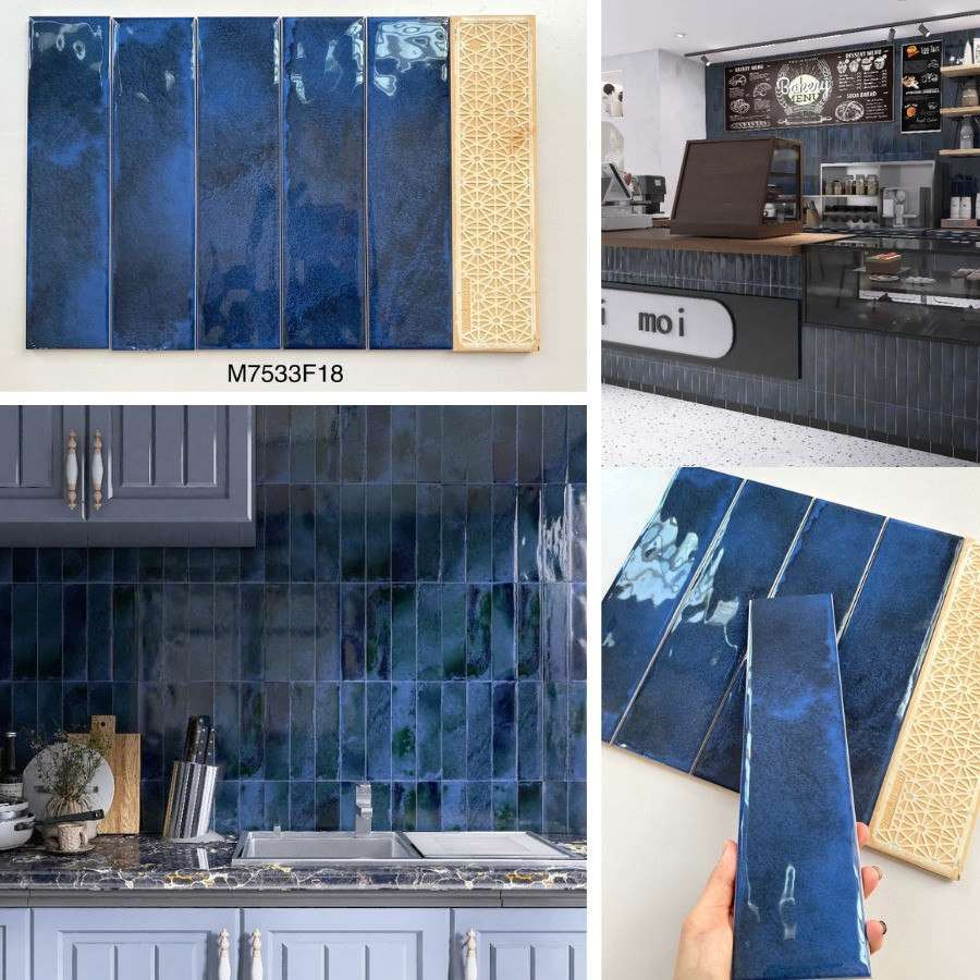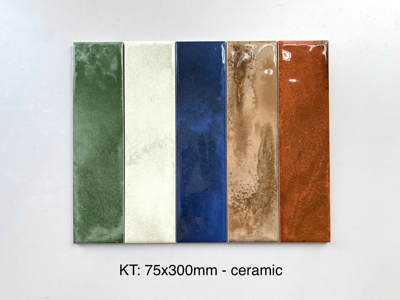 Gạch thẻ được làm từ chất liệu chính là gạch men – Ceramic, bề mặt bóng ,được ưa chuộng nhất trong khoảng thời gian gần đây.