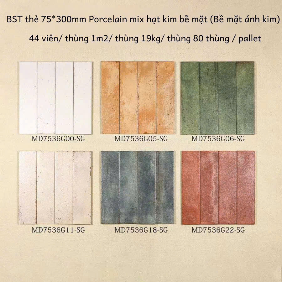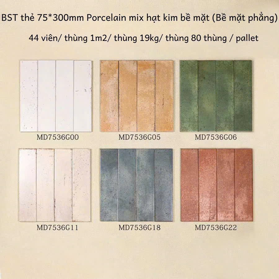 Gạch thẻ được làm từ chất liệu chính là gạch men –Porcelain , bề mặt hạt kim ,được ưa chuộng nhất trong khoảng thời gian gần đây.