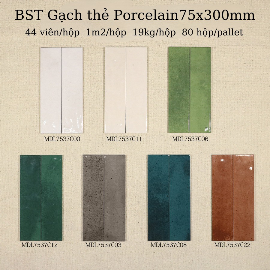 Gạch thẻ được làm từ chất liệu chính là gạch men –Porcelain , bề mặt hạt kim ,được ưa chuộng nhất trong khoảng thời gian gần đây.