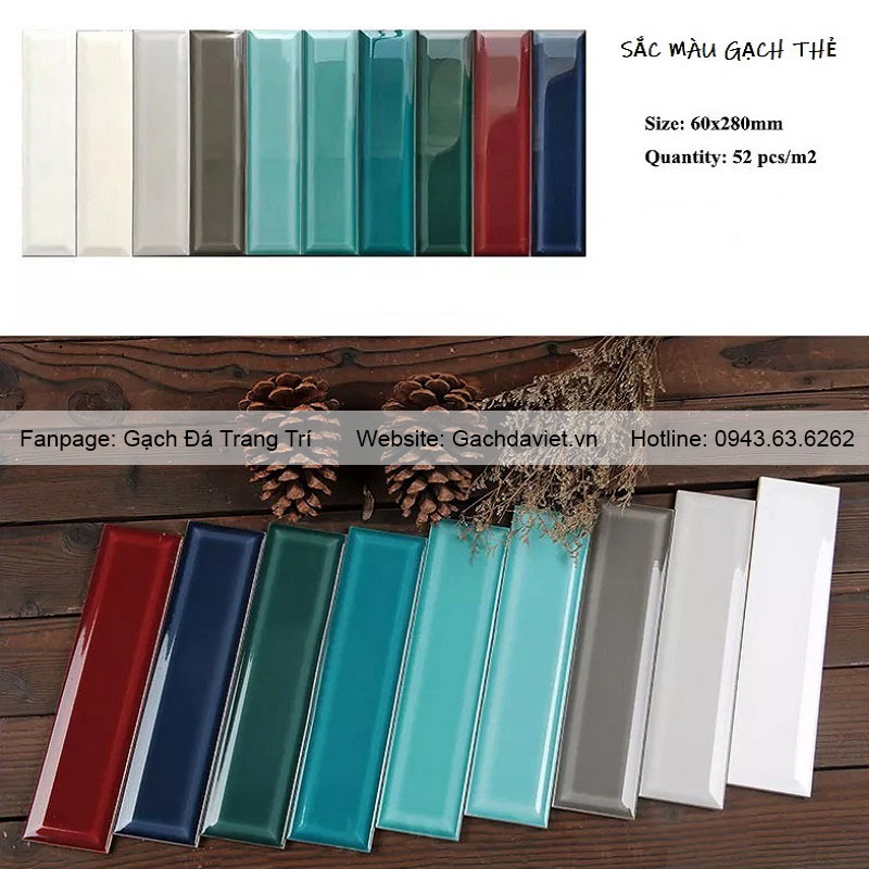 Gạch thẻ được làm từ chất liệu chính là gạch men – Ceramic, bề mặt bóng ,được ưa chuộng nhất trong khoảng thời gian gần đây.